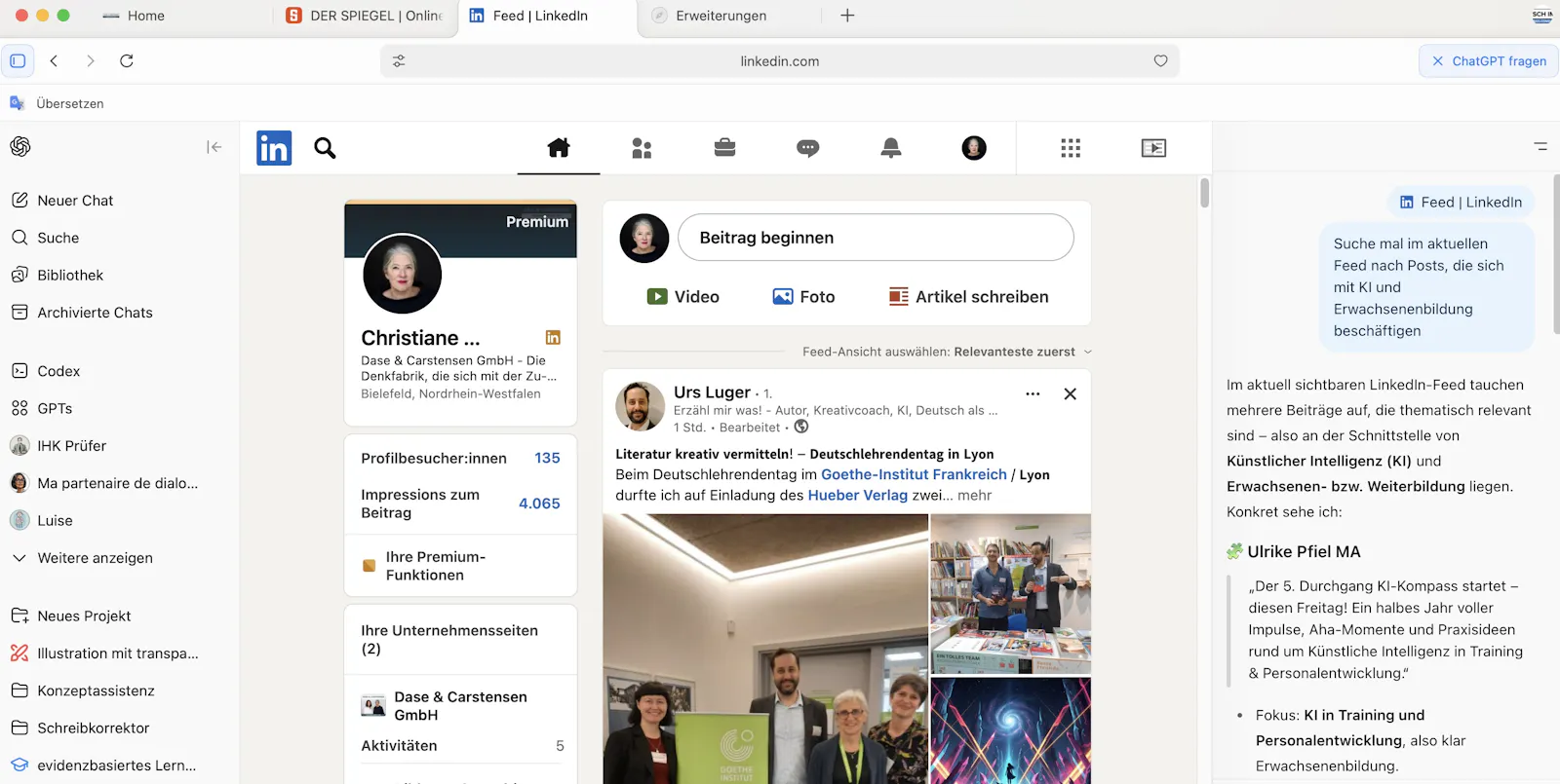 Wir stellen den Browser und unsere Erfahrungen gerne live in der nächsten 51° Nord-KI-Sprechstunde vor (Termin folgt).