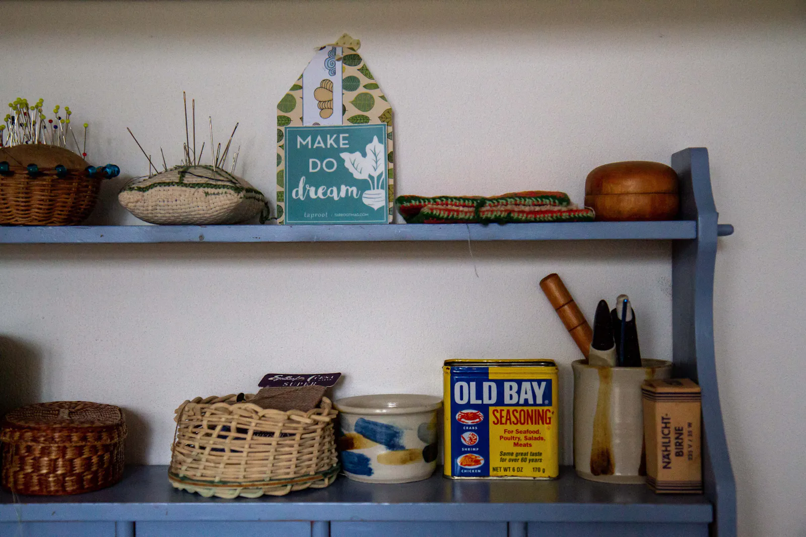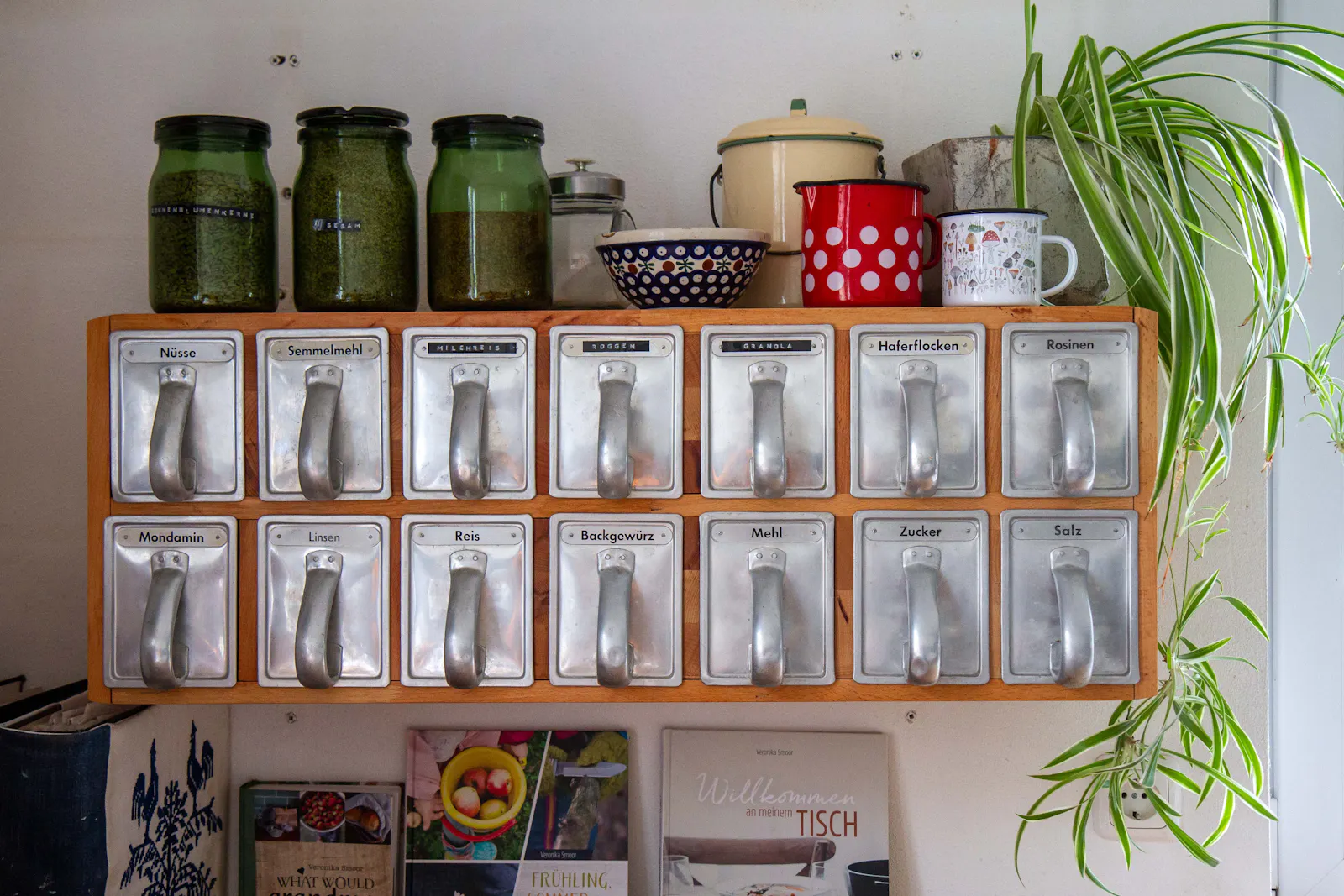 Mein Mann hat mir diese Schütten in der Küche aufgehängt (und das Holzgehäuse gebaut), die ich von meiner Mutter bekommen habe. Ich liebe, liebe, liebe das neue Eck!