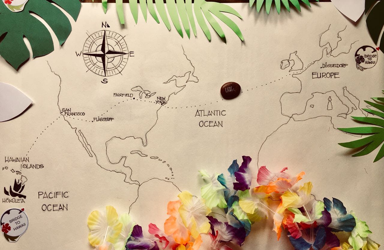 Doch dies reichte mir nicht. Also schrieb ich der Redaktion einer großen, deutschen Tageszeitung, um diese für die HŌKŪLE’A zu begeistern. Die Bemühungen verliefen im Sande und nachdem ich herausfand, dass die aktuelle Reiseroute als einzigen Kontinent Europa aussparte, entwickelte sich eine Idee, um „Malama Honua“ auch von hier aus mit Leben zu füllen und zu unterstützen. „Bridge to Hawaii“ wurde geboren und sollte die Lücke zwischen Europa & Hawaii schließen, die aus meiner Sicht entstanden war. Zunächst im Sinne einer Familienzusammenführung von einem mir bekannten Geschwisterpaar mit polynesischen Wurzeln, das noch nie einen Fuß auf die Inseln gesetzt und so seine Verwandten gesehen hatte und dem umweltfreundlichen Verhalten, das sowohl den wohlwollenden Umgang der Menschen untereinander, als auch den mit der Erde in all ihren Facetten fördern sollte.