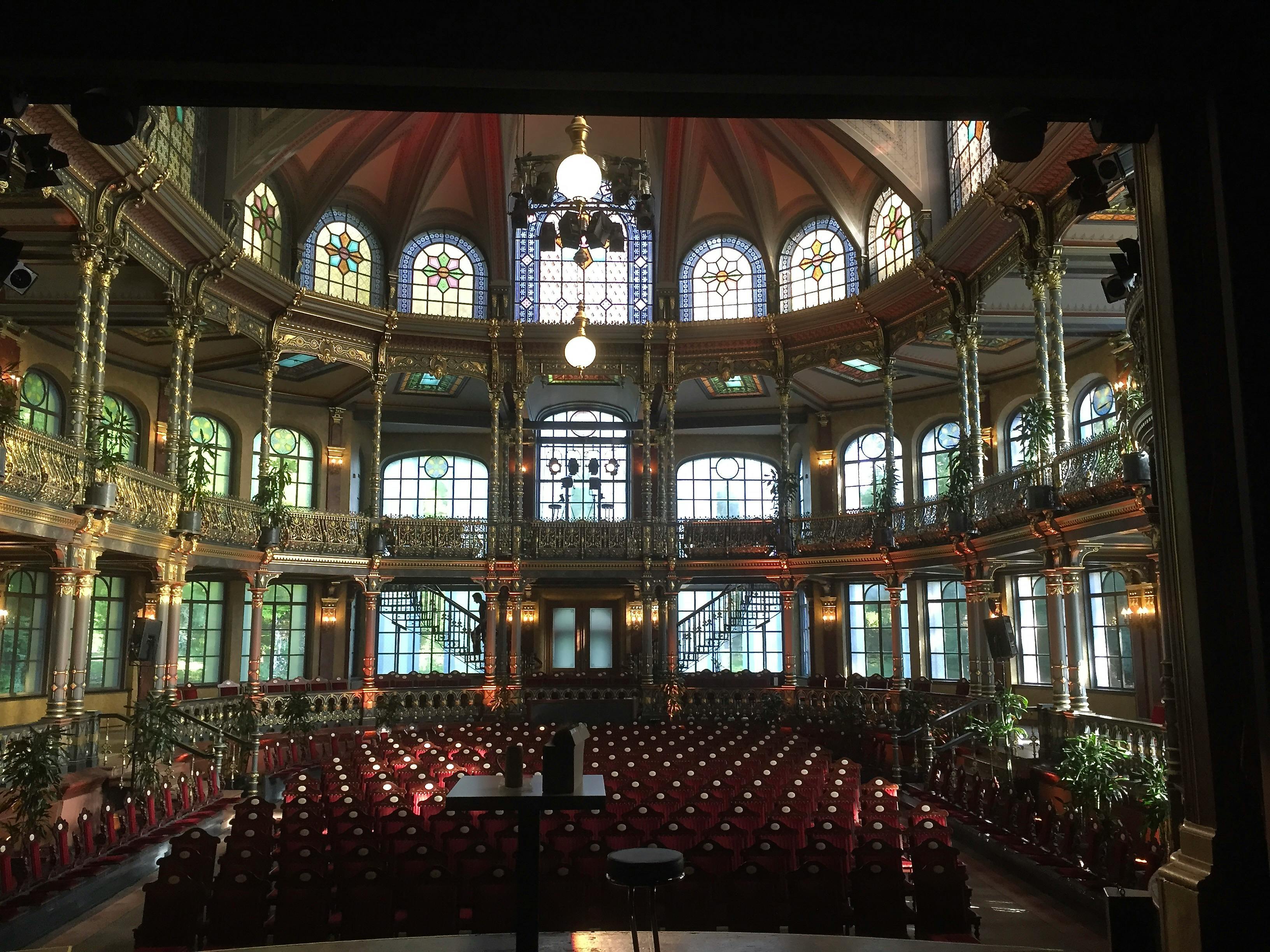 Wenn Ihr nämlich in ein Theater geht, um Euren Lieblingskabarettisten zu besuchen, dann seht Ihr die Bühne vom Zuschauerraum aus. Heute möchte ich Euch mal den umgekehrten Blickwinkel vorstellen, also wie ein Zuschauerraum von der Bühne aussieht. Ihr bekommt also ganz exklusiv einen Einblick in meinen Arbeitsplatz, und deswegen präsentiere ich Euch zehn Fotos von zehn Zuschauerräumen.