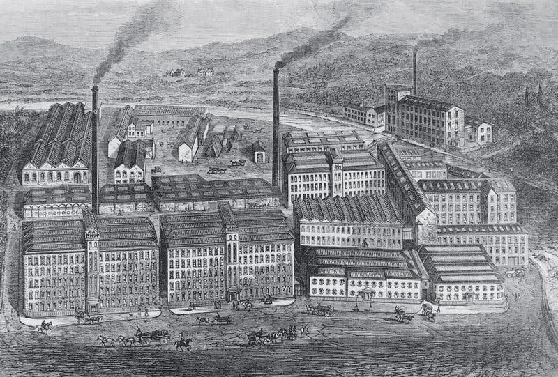 So in articulating his analysis and the strategies he derived from it, Marx is essentially placing a bet on the future, instead of engaging in too much detail with a largely still non-capitalist global present, because he supposes that in strategic terms, it's basically already obsolete (overtaken by capitalism). We could now argue at length about how strongly "capitalism" depends on "the factory" (because there's of course also other, non-factory-based forms of capitalist production and accumulation), but starting from the 1850s we definitely have to note that the factory began a long victory march from there: life in capitalism became so strongly shaped by the factory that it is impossible, for example, to think of political forms like the mass trade union or social democratic mass parties without their foundation in the moment of collective production in the factory. And a step even further yet: when French theorists like Foucault or Deleuze and Guattari write in the 1960s and 70s that the school looks like the prison, which looks like the hospital, which looks like the barracks, which looks like a factory, then in the end it always comes down to this: that life in industrial-capitalist societies is powerfully shaped by the fact that at their core lies the factory. That is, over a hundred years after Marx's strategic wager on the centrality of the factory in intra-capitalist social struggles, this assumption still held, and yielded strategic dividends.