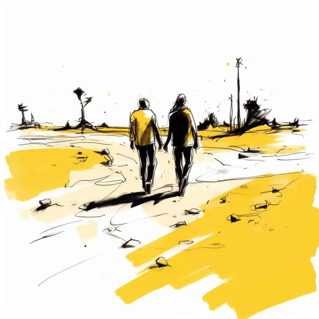 „Mann, der Sand ist glühend heiß! Wir können uns nicht mal hinsetzen!“ Leichte Panik schwingt in ihrer Stimme. „Hast du das Geld mitgenommen, dass wir uns wenigstens das Wasser kaufen können, wenn wir da sind?“