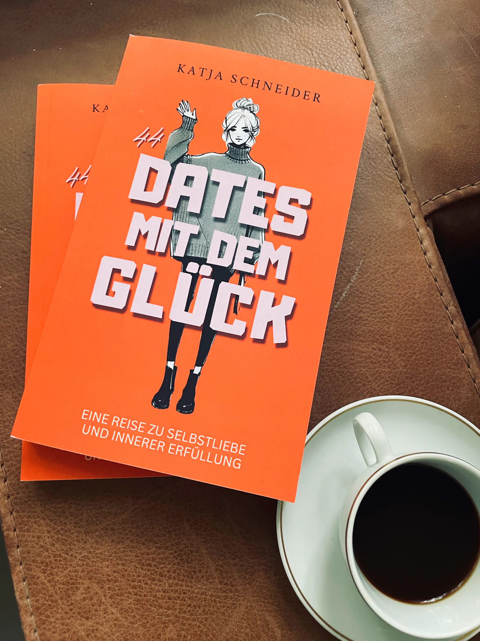 Und dann wurde es doch noch was. Man checkt das ja erst wirklich, wenn es eine Form angenommen hat, die man anfassen kann. Manchmal halte ich mitten in meinem Tun inne und denke: Verrückt! Ist es nicht ein faszinierender Prozess, wie Kreation funktioniert? Wie man etwas aus dem Nichts heraus erschafft? Etwas gestaltet, das es vorher noch nicht gab? Am Anfang war es eine leere Seite in einem Word Dokument, ein erstes Wort, dann noch eines und noch eines. Am Ende lag ein Karton in meinem Flur, ein Karton voller Glück. So heißt auch mein Buch: „44 Dates mit dem Glück“, erhältlich bei Amazon (den direkten Link zum Buch findet ihr in meiner Bio 🧡). Nur, falls es sich noch nicht rumgesprochen hat.