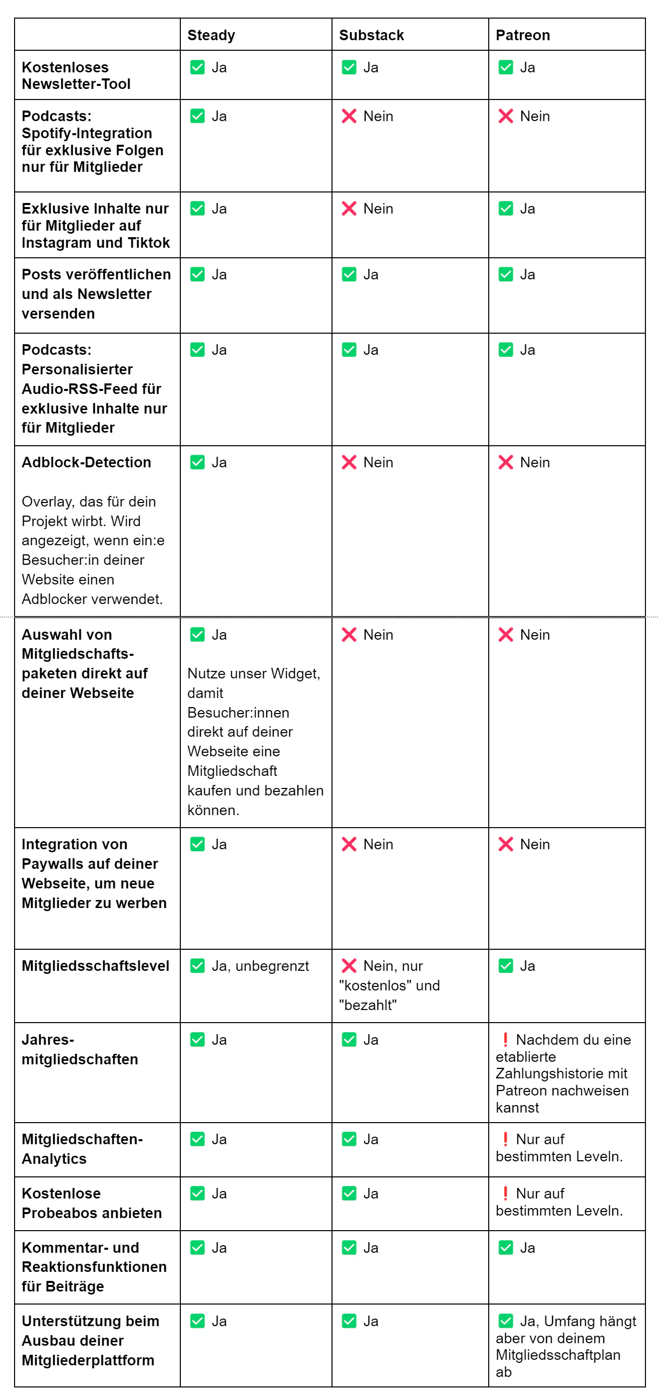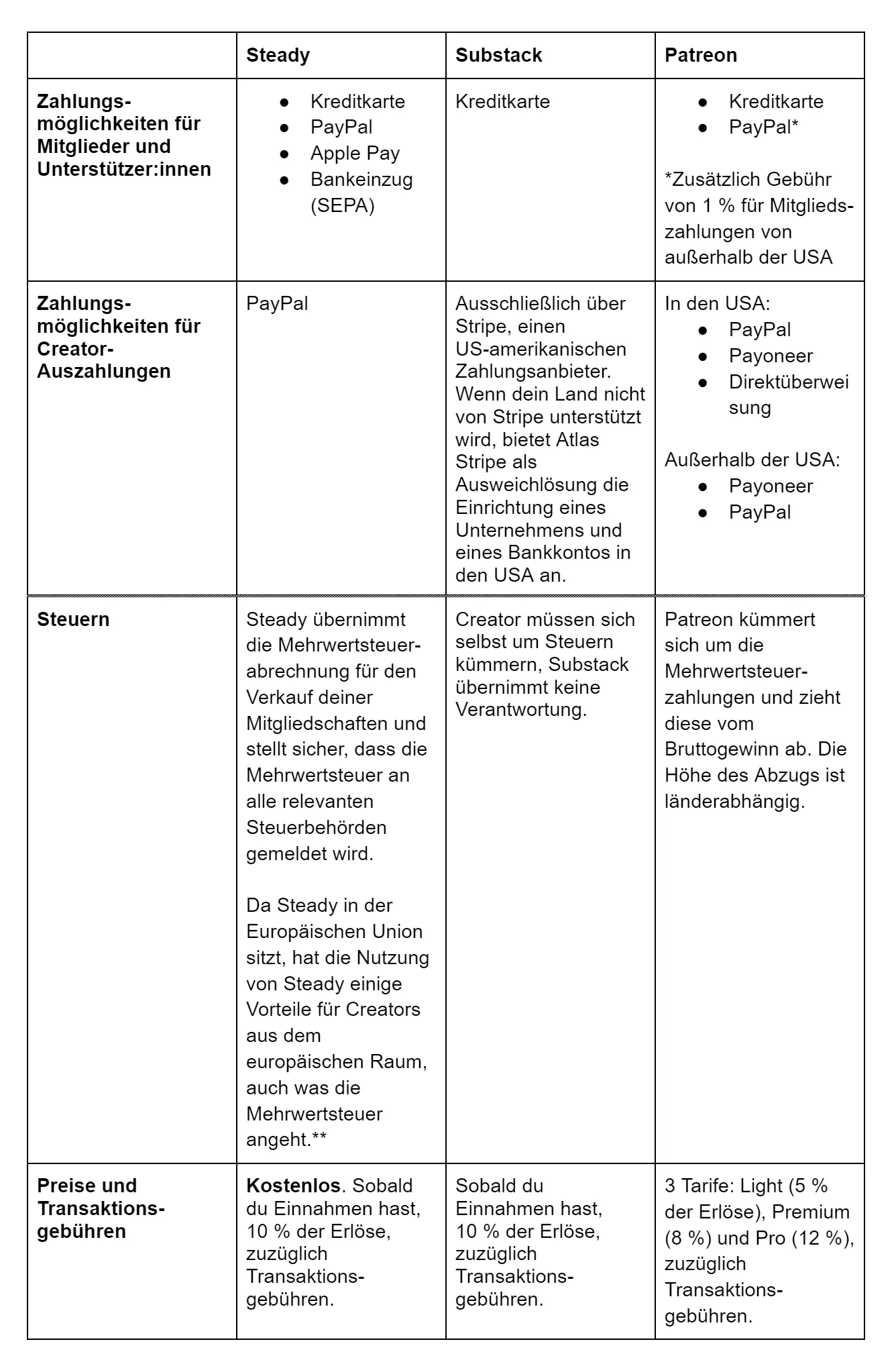 Teil 1. Steady, Substack oder Patreon? 🤔