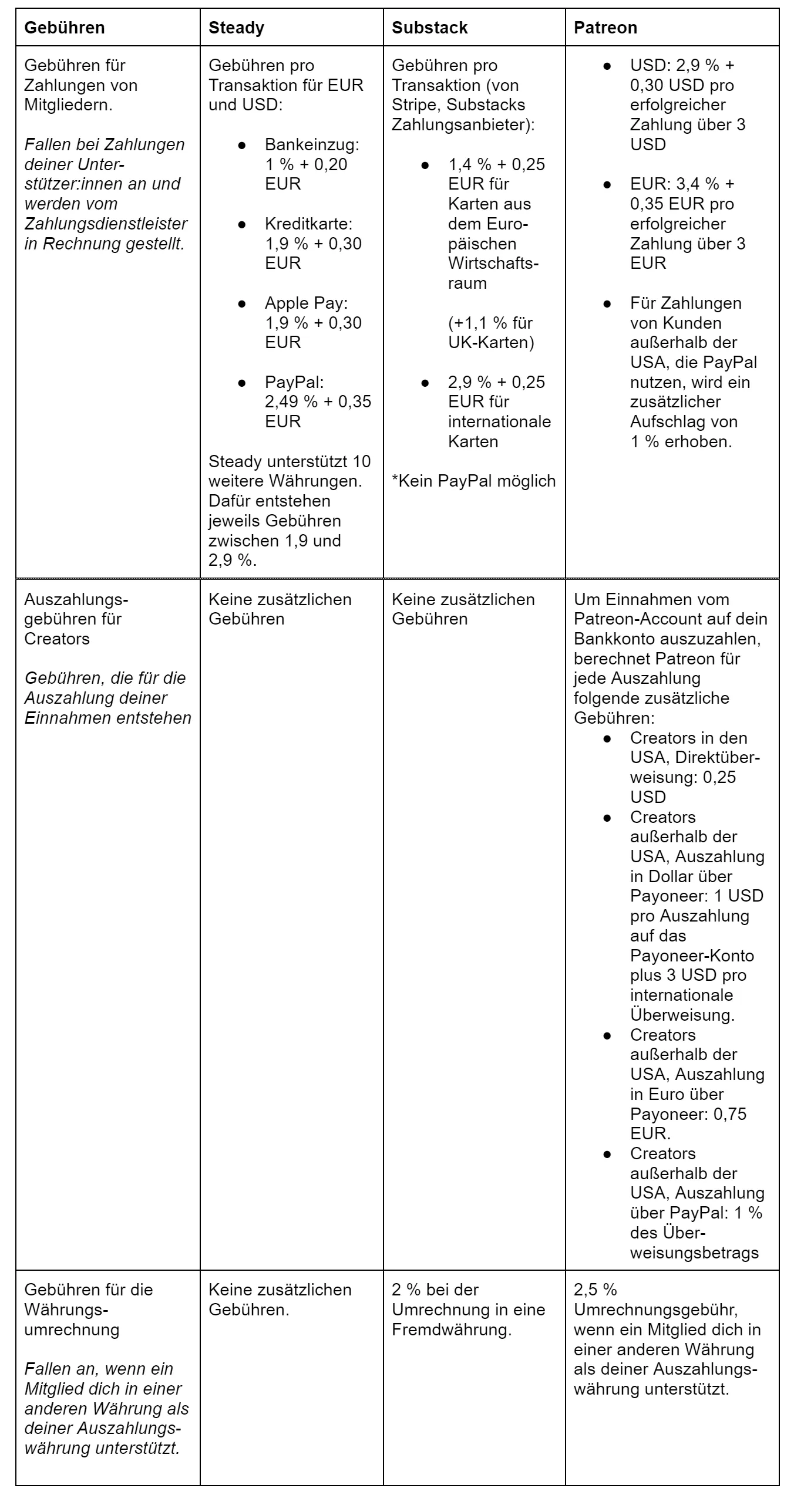 Teil 2. Transaktionsgebühren im Detail: Steady vs. Patreon vs. Substack