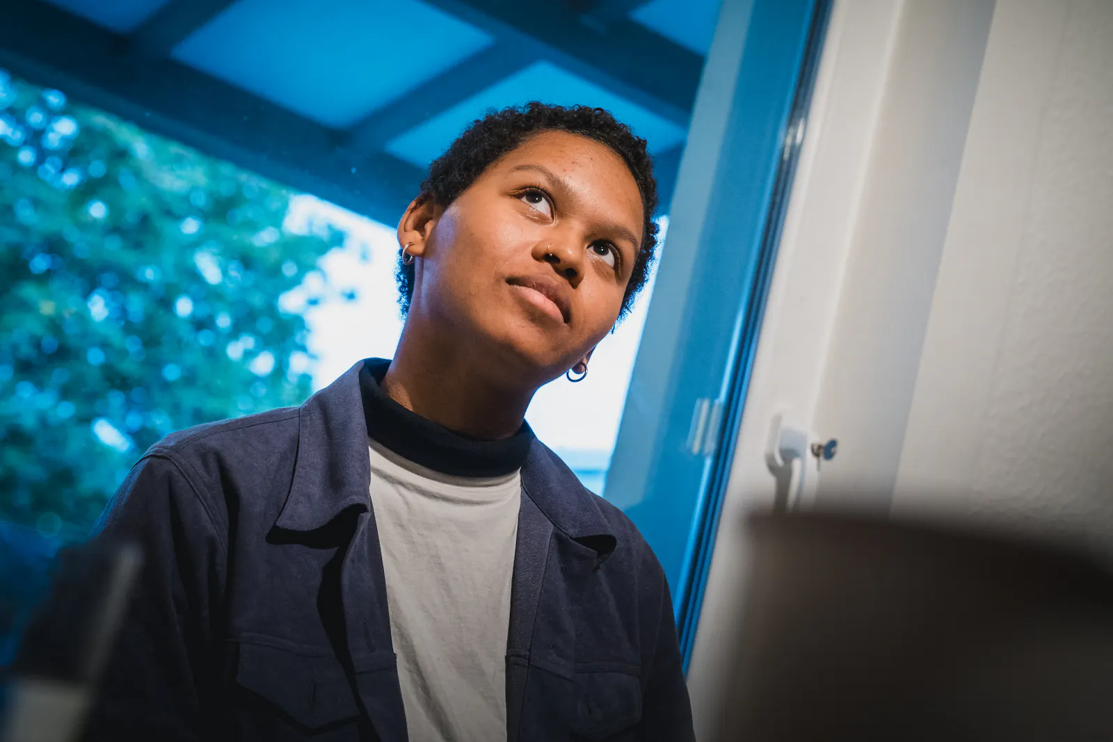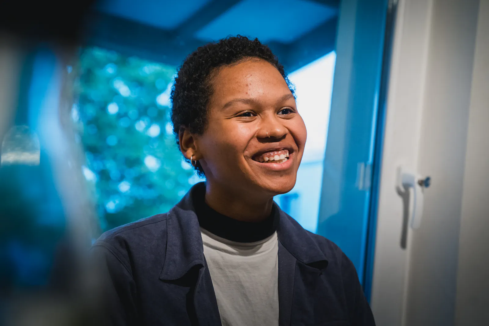 Ich bin als Kind immer aufgefallen und wollte immer auch überall dazu gehören. Weil ich wusste noch nicht ganz, wo ich hingehöre. In der vierten Klasse bin ich in eine Wohngruppe nach Limburg gezogen und nach einem Jahr wieder nach Wiesbaden, weil meine beiden kleinen Geschwister waren hier in einer Wohngruppe und dort war dann auch ein Platz für mich frei. Vor eineinhalb Jahren bin ich dann in meine eigene Wohnung gezogen. Also ich bin nicht zu Hause aufgewachsen. Die wichtigste Entwicklung habe ich in der Wohngruppe gemacht mit meinen Betreuerinnen und Betreuern, mit meinen Geschwistern, vor allem aber auch mit den anderen Jugendlichen. Wir waren zu acht und das prägt mich auch in dem Sinne, dass ich sage, ich möchte in die soziale Richtung, weil ich weiß, wie gut das sein kann und wie sich Kinder fühlen, die nicht zu Hause wohnen. Ich hatte gute Betreuer:innen und das will ich weitergeben.