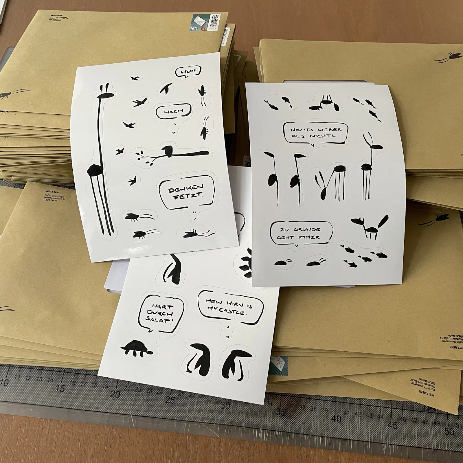 Als Dankeschön für all die tollen Menschen, die mich auf Steady unterstützen, gehen heute noch diese DIN A5-Aufkleberbögen zur Post. Ich hoffe ihr freut euch. Und ich bin gespannt, wo ihr die Sticker überall hinkleben und wie ihr sie kombinieren werdet. Ich frue mich, wenn ihr davon berichtet und postet