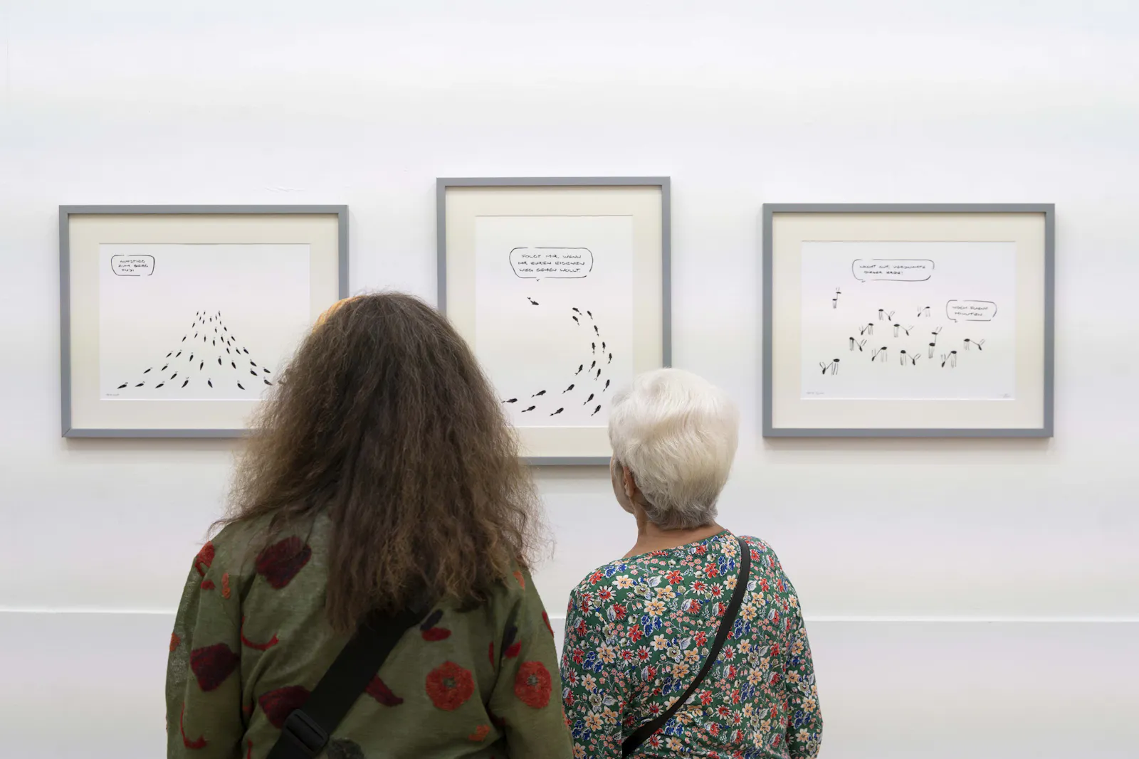 https://www.eventbrite.com/e/was-habe-ich-mir-dabei-gedacht-kunstlerfuhrung-durch-die-ausstellung-3-tickets-733790225317?utm-campaign=social&utm-content=attendeeshare&utm-medium=discovery&utm-term=listing&utm-source=cp&aff=ebdsshcopyurl (Öffnet in neuem Fenster)Auf der Buchmesse werde ich noch mal mit Flix und @Krieg und Freitag auf der Bühne sein. Am 21. 10., 16 Uhr unterhalten wir uns übers Zeichnen, über Humor und über was uns noch so einfällt. Anschließend und auch am Sonntag, den 22. 10., 13–14 Uhr gibt es Signierstunden. Für alle Veranstaltungen sollte man sich (kostenfrei) anmelden.