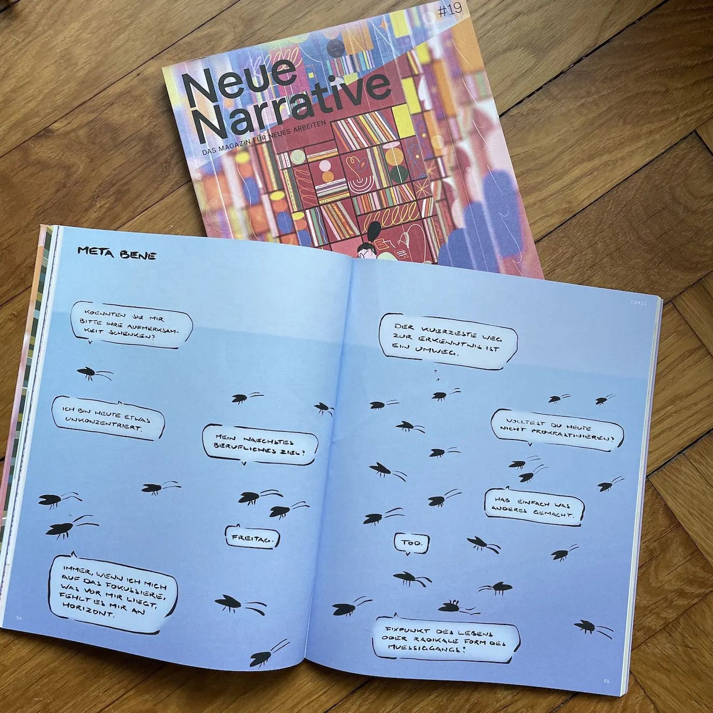 Es gibt wieder eine farbige Doppelseite im Neue Narrative-MAgazin Thema “Fokus.”