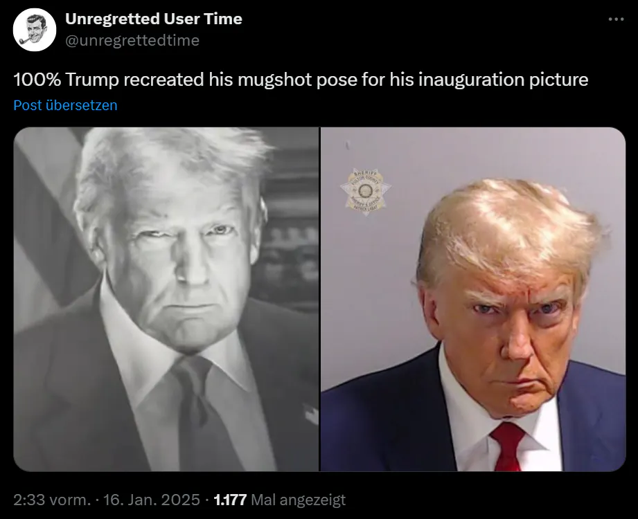 Dieses Portrait wird Geschichte schreiben. Aber nicht, weil es ikonisch ist – sondern weil es das politische Klima der USA so gnadenlos auf den Punkt bringt. Ein Präsident, der sein Polizeifoto zur Machtpose erhebt, ist weniger Staatsmann und mehr Reality-TV-Star auf Steroiden.