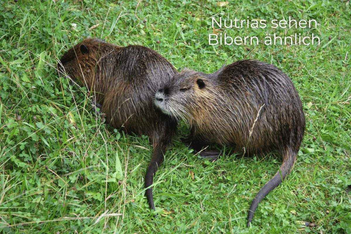 Biber werden oft mit Nutrias verwechselt. Die sind aus einem anderen Land eingeschleppt worden und sehen Bibern ähnlich. Allerdings haben sie keinen breiten Schwanz, sondern einen dünnen Schwanz. Daran kann man sie gut unterscheiden. Sie bauen auch keine Dämme. Schau, das hier ist ein Nutria: