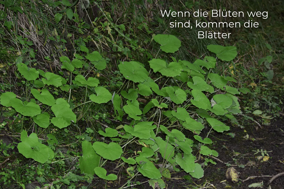 Der Huflattich blüht schon gelb, obwohl seine grünen Blätter erst später nachwachsen. So sieht er aus, bevor die Blätter kommen: