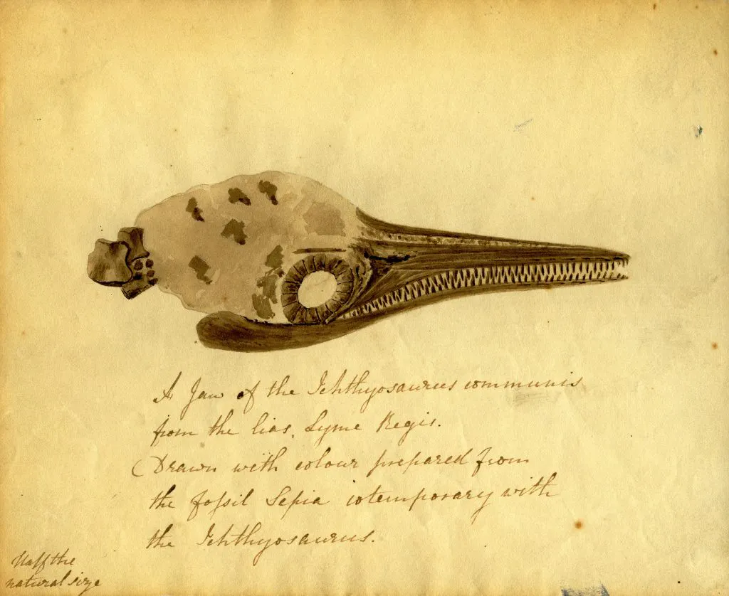 Mary Anning war etwa zwölf Jahre alt, als sie im Jahr 1811 zusammen mit ihrem älteren Bruder Joseph eine Entdeckung machte, die für immer in die Geschichte der Wissenschaft eingehen sollte. In der Nähe ihres Heimatortes Lyme Regis (an der Südküste Englands) entdeckten sie nämlich den Schädel eines riesigen Meeresreptils. Sie hatten den ersten vollständigen Schädel eines Ichthyosauriers gefunden – und zwar auf der ganzen Welt. Das Fossil kann man heute noch in Oxford angucken: