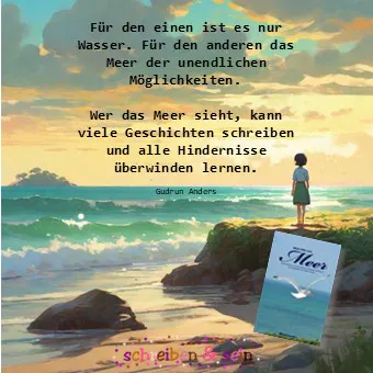 Das Zitat „Für den einen ist es nur Wasser. Für den anderen das Meer der unendlichen Möglichkeiten. Wer das Meer sieht, kann viele Geschichten schreiben und alle Hindernisse überwinden lernen“ fängt die Kraft des Meeres ein, Menschen zu inspirieren.
