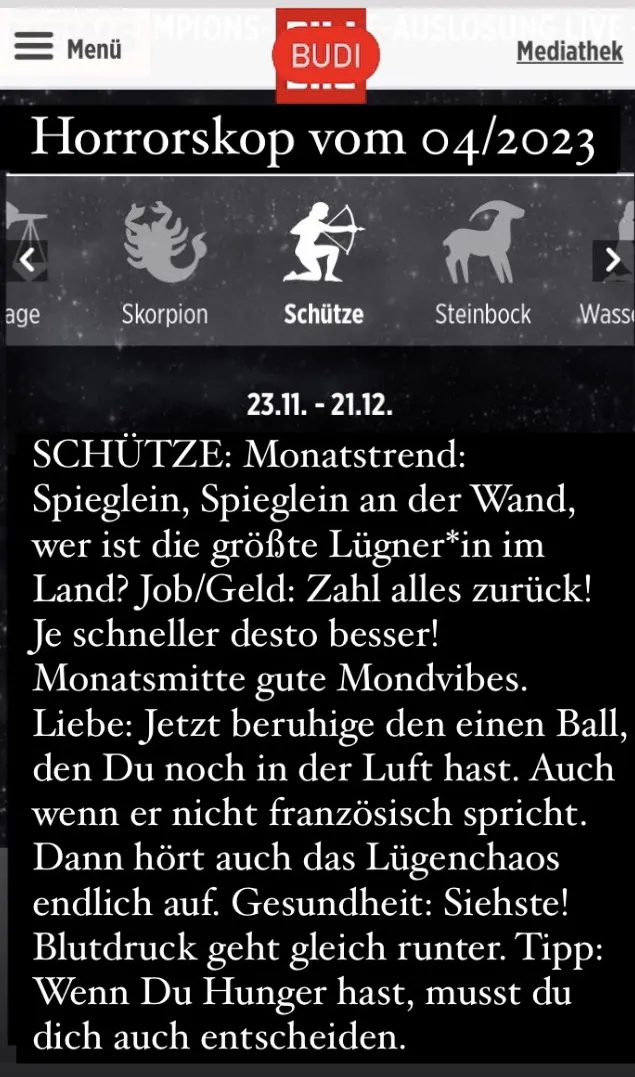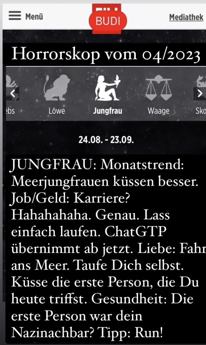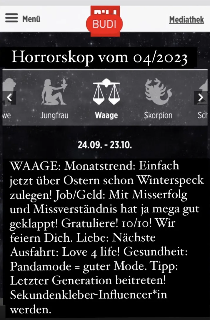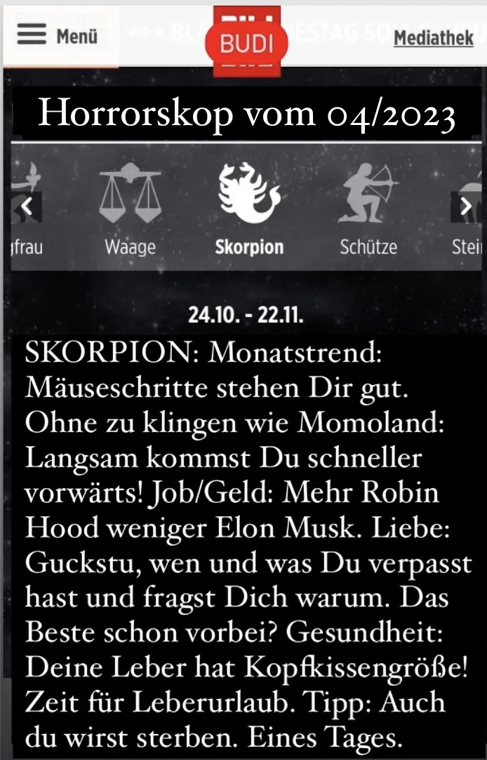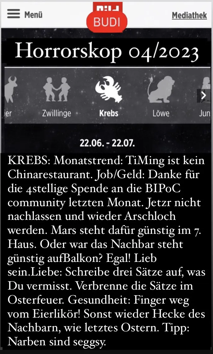 Gönn Dir Muckibudes Tierkreiszeichen-Horror schon mit dem kleinsten Paket! Garantierte Zwerchfellentsapnnung. Erleuchtung inklusive.