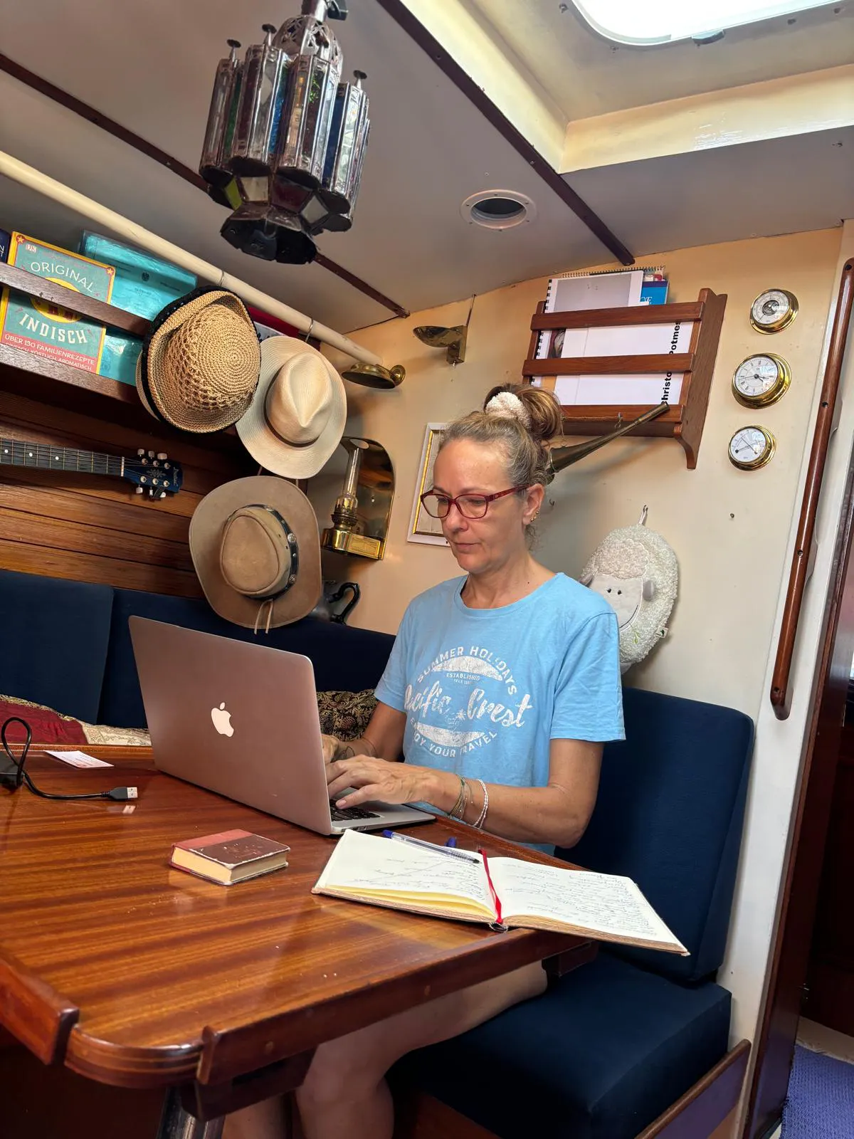 Während die Gattin schreibt, wird der Käptn zum Deckschrubben abkommandiert.