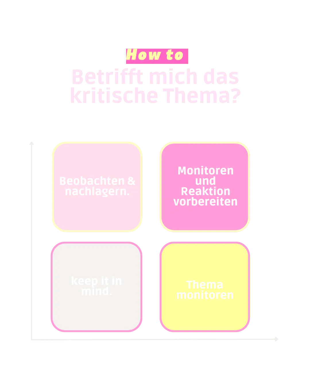 Rollenerwartungen klären: Wie kann das Unternehmen Verantwortung übernehmen? Auf welche Art und Weise wünschen sich die Stakeholder Unterstützung oder Maßnahmen? Welche Möglichkeiten hat dein Unternehmen, um in seinem Umfeld einen echten Impact hinterlassen zu können?