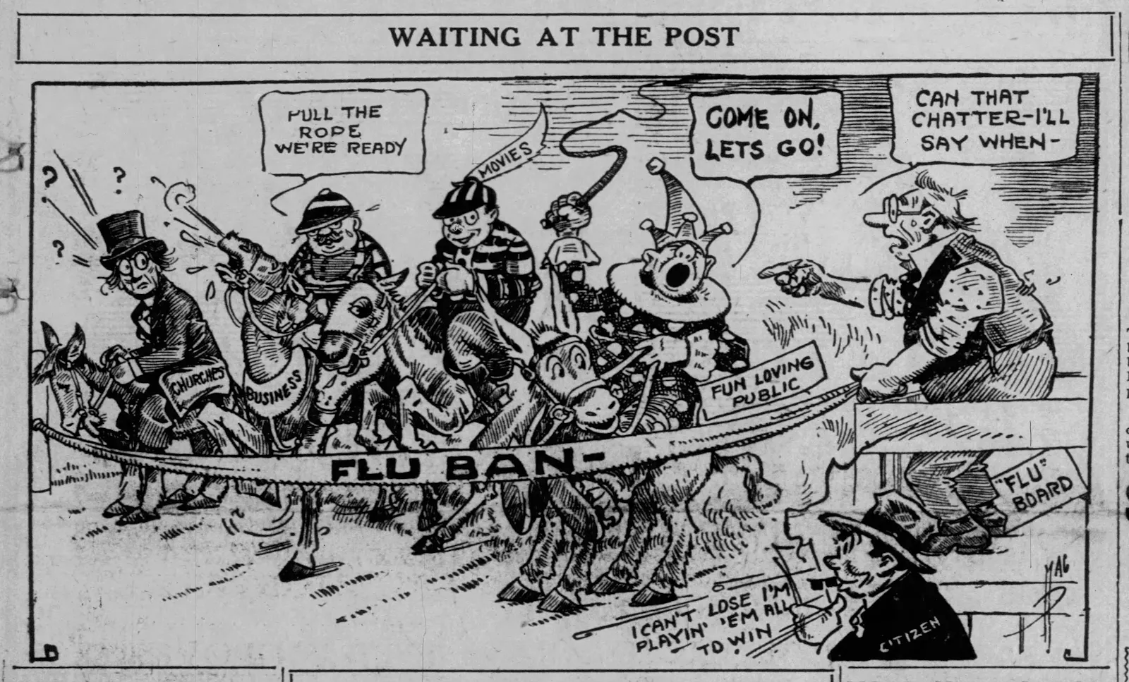 Im November 1918 warteten die Amerikaner immer noch auf den "Startschuss" des "Flu Board" - genauso wie so mancher Deutsche seit 2020 angesichts der im Nachhinein extrem strengen Coronaschutzmaßnahmen zunehmend "mit den Hufen scharrte" und immer ungeduldiger Richtung Robert-Koch-Institut blickte.