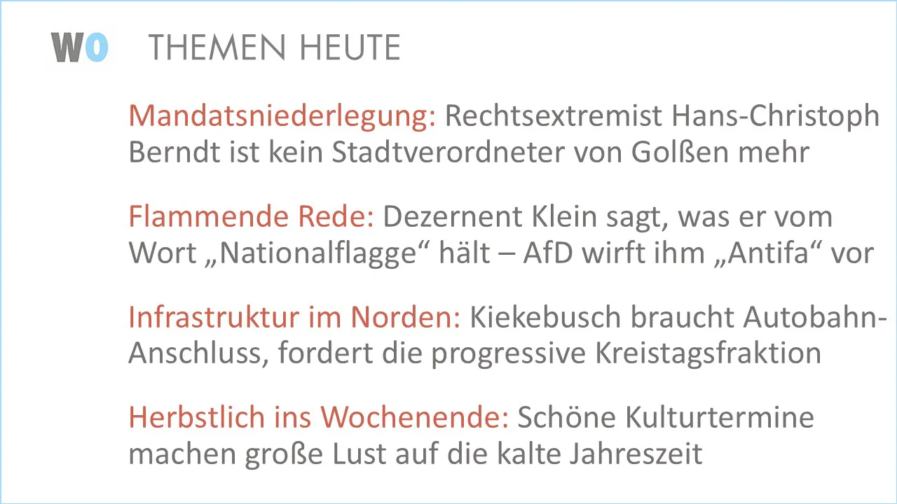 die AfD möchte “in den Parlamenten stark werden”, wie ihr Landesvorsitzender Hans-Christoph Berndt kürzlich sagte. Nun hat ausgerechnet er sein Mandat für die Golßener Stadtverordnetenversammlung niedergelegt. Das ist in der Sitzung am Montag in einem Nebensatz bekannt geworden, als mit Mathias Gregur ein Nachrücker verpflichtet wurde. Einen Grund für die Mandatsniederlegung hat der als erwiesen rechtsextrem eingestufte Hans-Christoph Berndt bisher weder öffentlich, noch auf meine Anfrage mitgeteilt. Pikant wird die Nachricht dadurch, dass er in der vorangegangenen Sitzung noch an der Abstimmung (Öffnet in neuem Fenster) über die Rückgabe seiner Spende zum Stadtfest teilgenommen hat, obwohl er sich nach Paragraf 22 der Brandenburgischen Kommunalverfassung für befangen hätte erklären müssen. Die von der Fraktion Gemeinsam für Golßen (GfG) geforderte Rückgabe der Spende hatte schließlich mit 8:8 Stimmen keine Mehrheit gefunden.