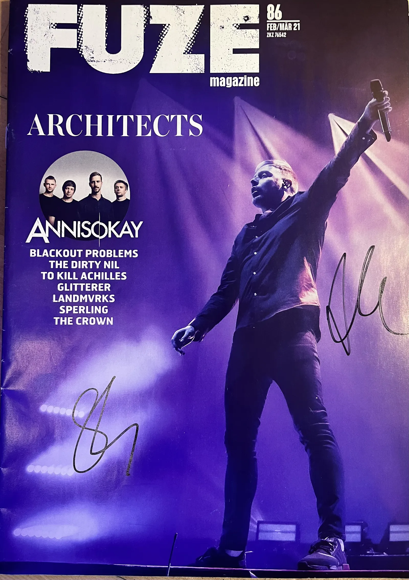 AUTOGRAMME! Unsere englischen Freunde ARCHITECTS zieren nun zum vierten Mal das Cover! Und da wir Sam und Dan in Berlin zum Interview getroffen haben, haben wir ihnen direkt mal die alten Ausgaben mitgebracht und unter die Nase gehalten. Damit könnt ihr nun bei uns die Fuze-Ausgaben 58,73 oder 86 gewinnen – von Sam und Dan persönlich für euch signiert zum Einrahmen und an die Wand hängen! Also je eine der drei signierten Ausgaben! Einfach eine Mail mit dem Betreff: „FUZE und ARCHITECTS, zwei meiner liebsten Dinge!“ an office@fuze-magazine.de (Opens in a new window) schicken. Einsendeschluss ist der 17.03.2025.