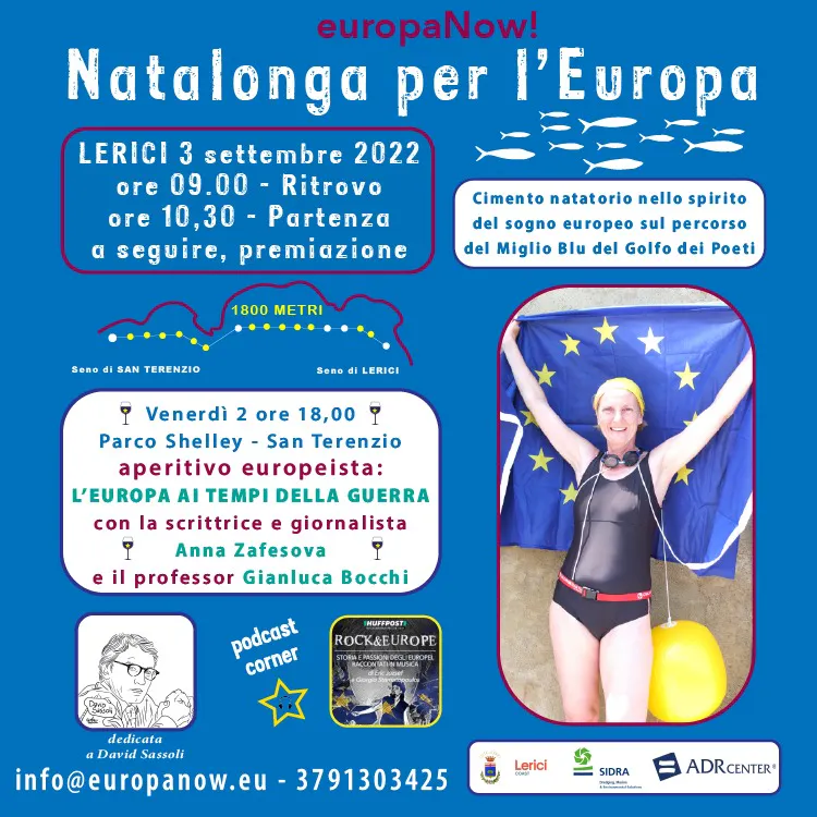 New Europeans International is supporting the swim marathon for Europe organised by our partner organisation Europa Now (Opens in a new window), which this year takes place in the Golfo dei Poeti, Lerici (near La Spezia) during the 200th anniversary year of the death of the English Romantic poet Percy Bysshe Shelley.