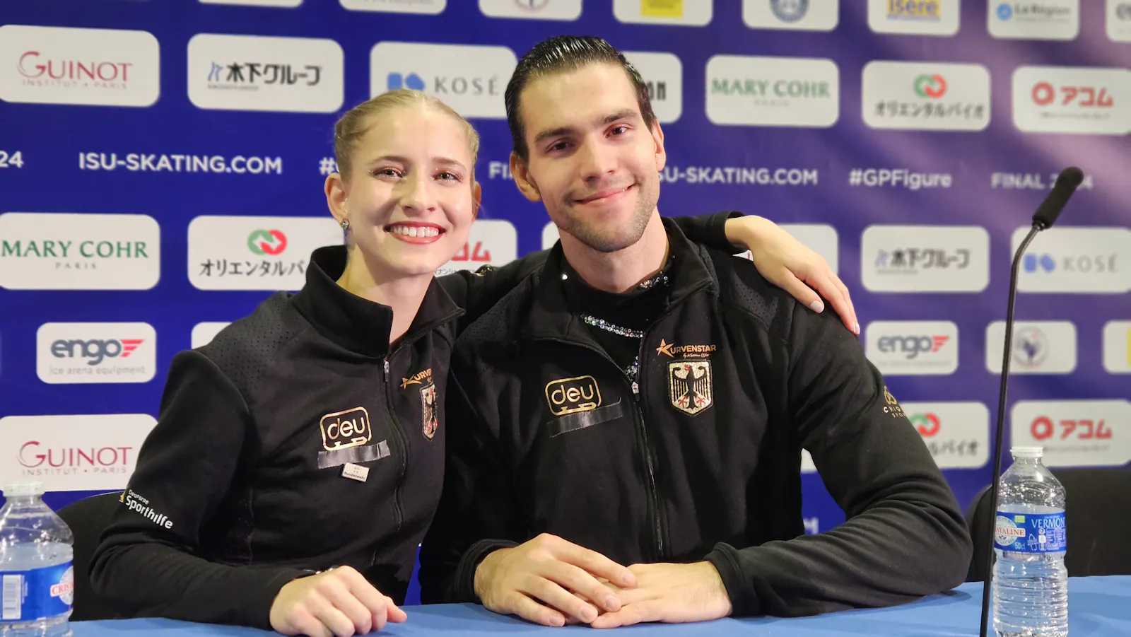 Es war jetzt hier im Finale das erste große Aufeinandertreffen (der Spitzenpaare), vor allem auch mit den Japanern, mit denen wir davor in der Saison noch nicht gelaufen sind und gegen die wir WM verloren haben, in Anführungszeichen. Von daher war die Anspannung ein bisschen höher, auch in der Kür nach dem KP. Wir wussten nicht, wie die anderen gelaufen sind. Wir halten uns bewusst unsere Ohren zu, um immer den gleichen Ansatz zu haben. Von daher hatten wir keine Ahnung. Dann saßen wir halt erstmal da (in der K&C) und waren so, okay, mal schauen. Aber ich glaube, die Performance wird besser. Ich habe mir die Programme beide angeschaut und auch wenn sie sich nicht perfekt angefühlt haben, sah es auf den Videos schon trotzdem wesentlich reifer aus. Es war mehr Schwung, mehr Emotionen und ich glaube, da können wir auf jeden Fall noch einen Schritt weitergehen.