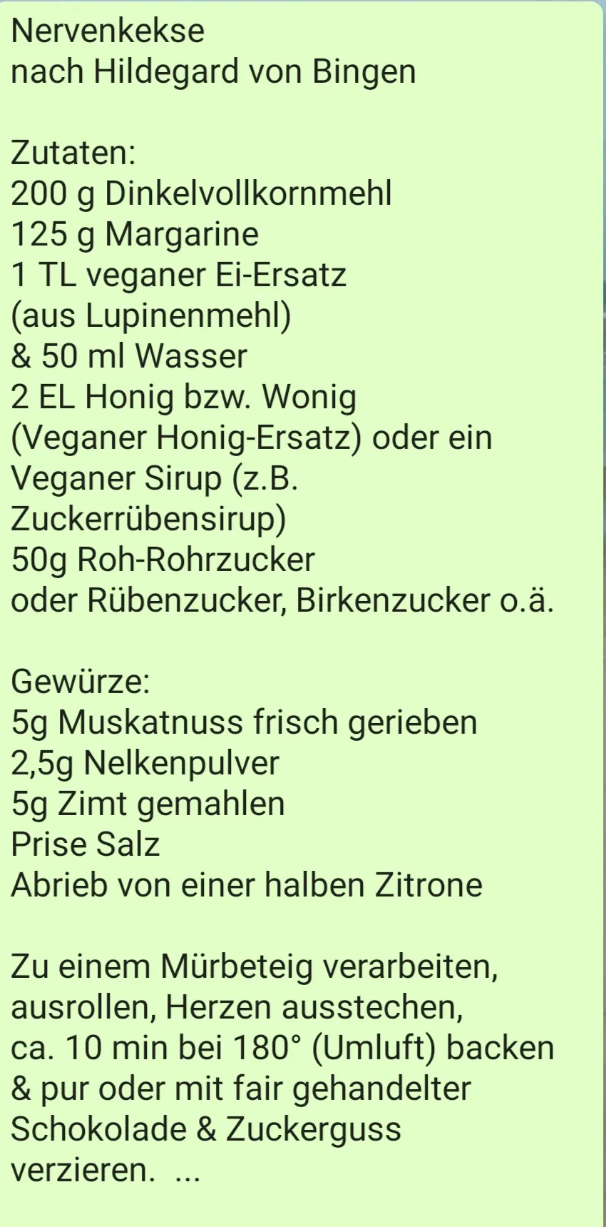 https://jahreszeitenkueche.de/energiekekse-hildegard-von-bingen/ (Opens in a new window)Noch ein Originalrezept mit O-Ton Hildegard … ;-)