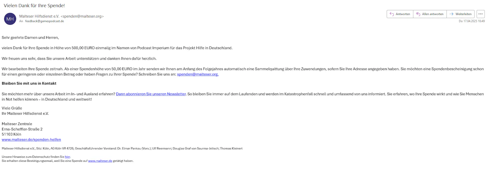 Achtung: Nicht auf diesen Newsletter antworten, das sieht er sonst.