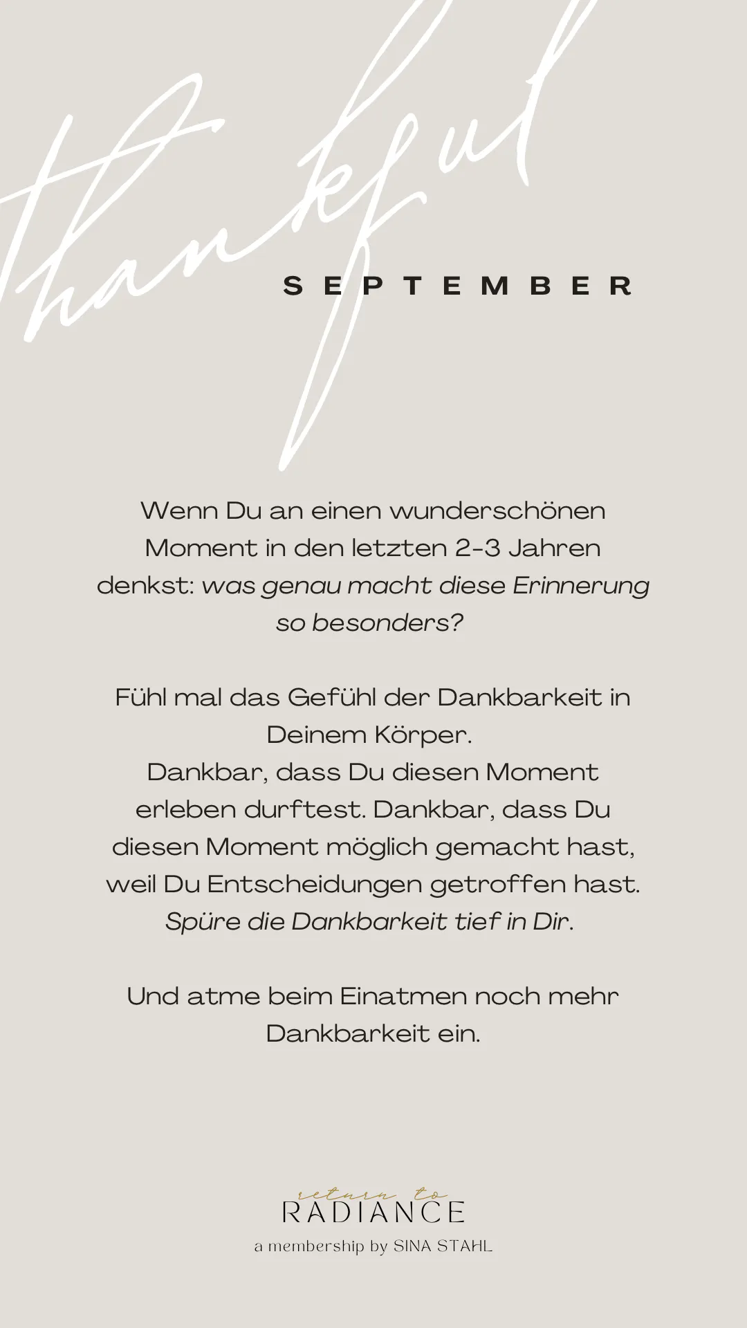 Ich mir überlegt, dass Du neben meinen Podcast Folgen zum Thema Dankbarkeit jetzt im September noch weitere Goldschätze bekommst.