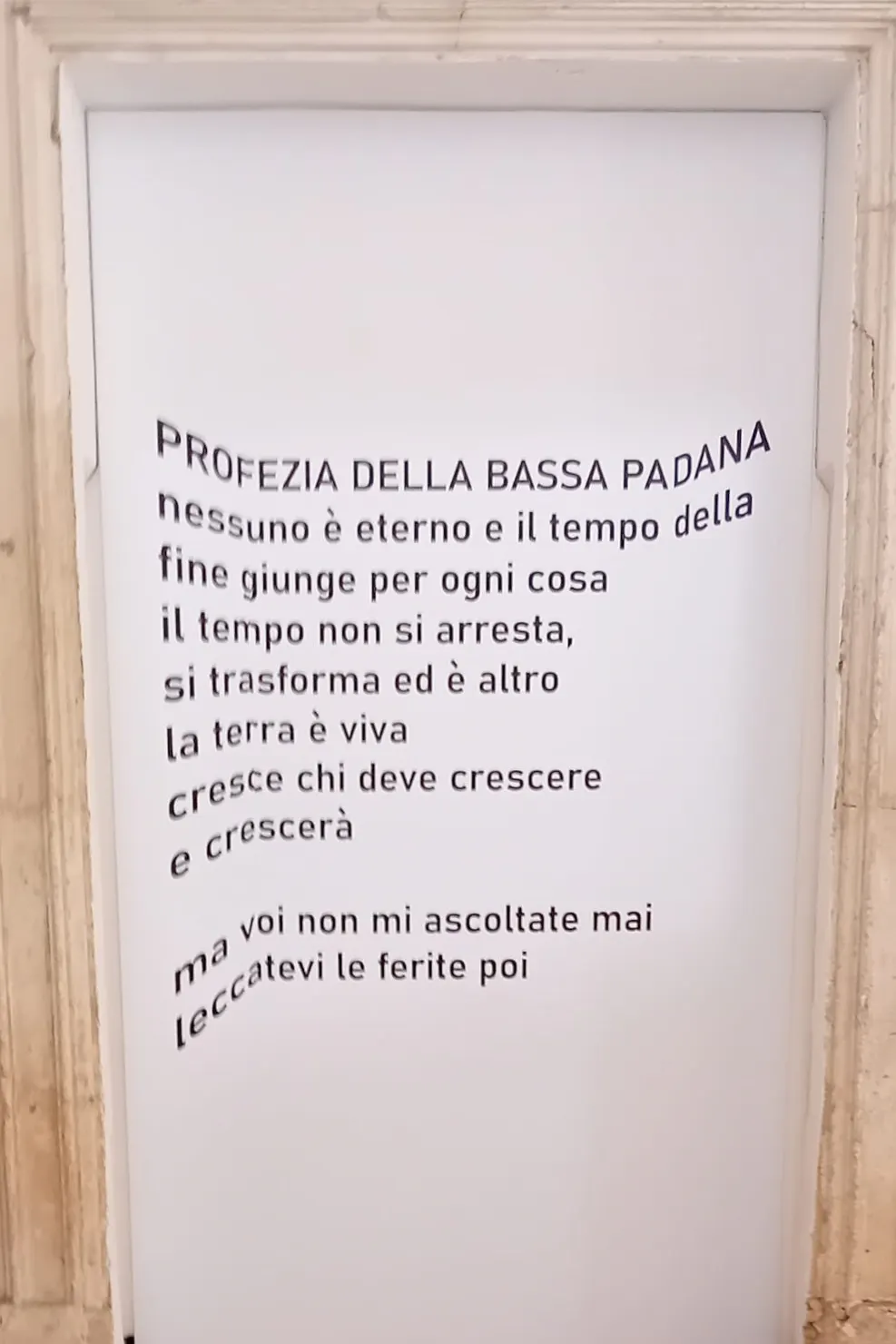 Bene, una nicchia nella mostra di Reggio (e la voce di Annarella Giudici all’ingresso della benemerita soubrette sul palco a Berlino) presentavano la seguente “Profezia della Bassa padana”.