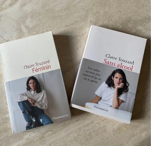 Auf dem hellen Marmortisch in der Mitte des Raumes steht ein Strauß frischer Blumen, daneben ihre beiden Bücher: „Sans alcool (Si apre in una nuova finestra)“, erschienen 2021, beschreibt ihren Weg aus der Alkoholsucht, „Féminin (Si apre in una nuova finestra)“ von 2022 handelt von Feminismus und der #Metoo-Bewegung. Für Touzard überschneiden sich diese Themen.