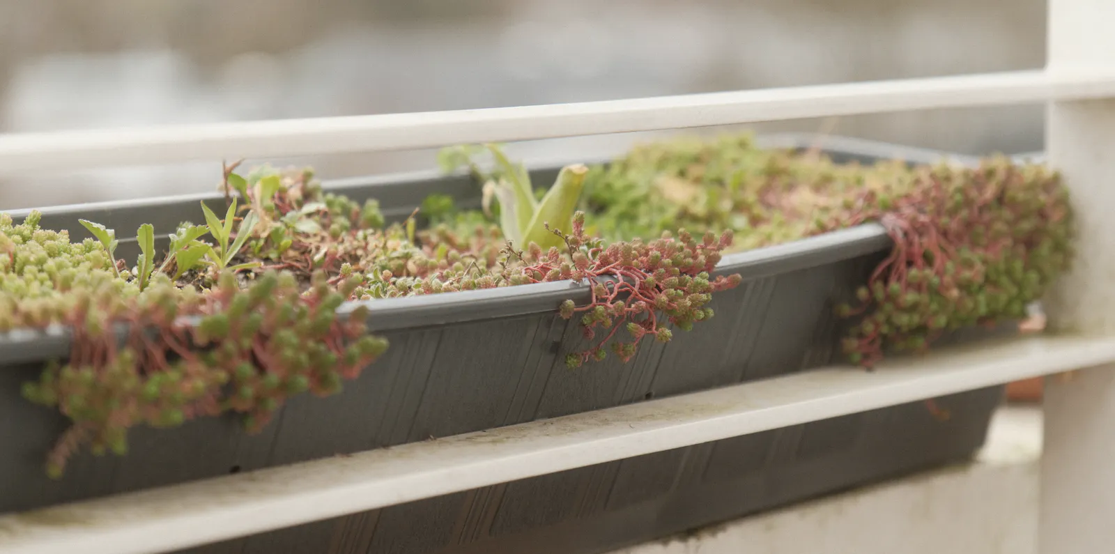 Mauerpfeffer und Co. all the way! Ernsthaft, ich habe einige dieser kleinen Balkonkästen im Dachgarten, und während ich die früher richtig bepflanzt hatte und echt dauernd gießen musste, hatte ich irgendwann aufgegeben. ALLERDINGS hatte ich darin Mauerpfeffer, Hauswurz und Co., und die haben sich einfach komplett darin ausgebreitet: