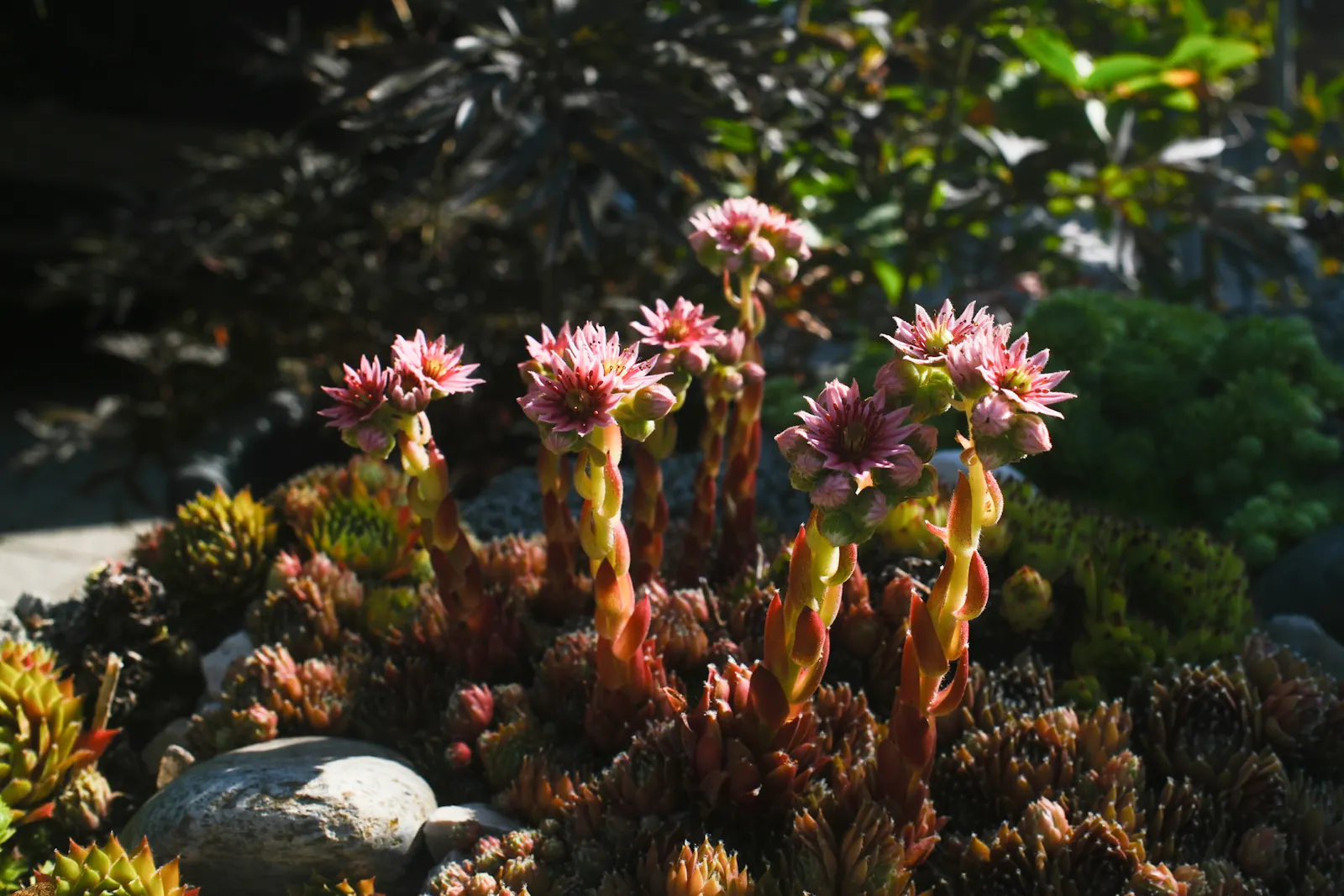 Im Frühjahr ist es da ja noch feucht genug für die. Im Sommer sind dann nur diese Sukkulenten drin und das sieht einfach auch echt nett aus.