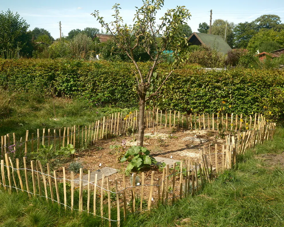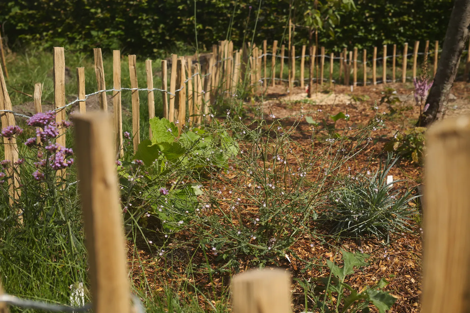 Nein, Spaß. Bei uns ist es so, dass die Hunde im Eifer des Gefechts Probleme haben, zu verstehen, wo Stop ist und wo nicht. Ich habe lange versucht, ihnen beizubringen, dass sie in den Palettenbeeten und den Staudenbeeten nichts zu suchen haben, aber wenn das Spiel sie mitreißt, checken die das einfach nicht mehr. Deshalb habe ich um die Bereiche, die ich schützen will, kleine Staketenzäune gezogen. Das sieht total süß aus und ist für die Hunde eine gut zu verstehende visuelle Barriere. Die sind nicht hoch, also es geht da nicht darum, sie mit allen Mitteln da physisch auszusperren. Die sind da drei Mal drüber gehüpft, dann gab es drei Mal eben “Nein” und dann haben sie verstanden, dass das eine echte Barriere ist, die sie respektieren müssen. Hast du das mal versucht? Ich finde es eigentlich echt hübsch. So sieht es im Waldgarten aus: