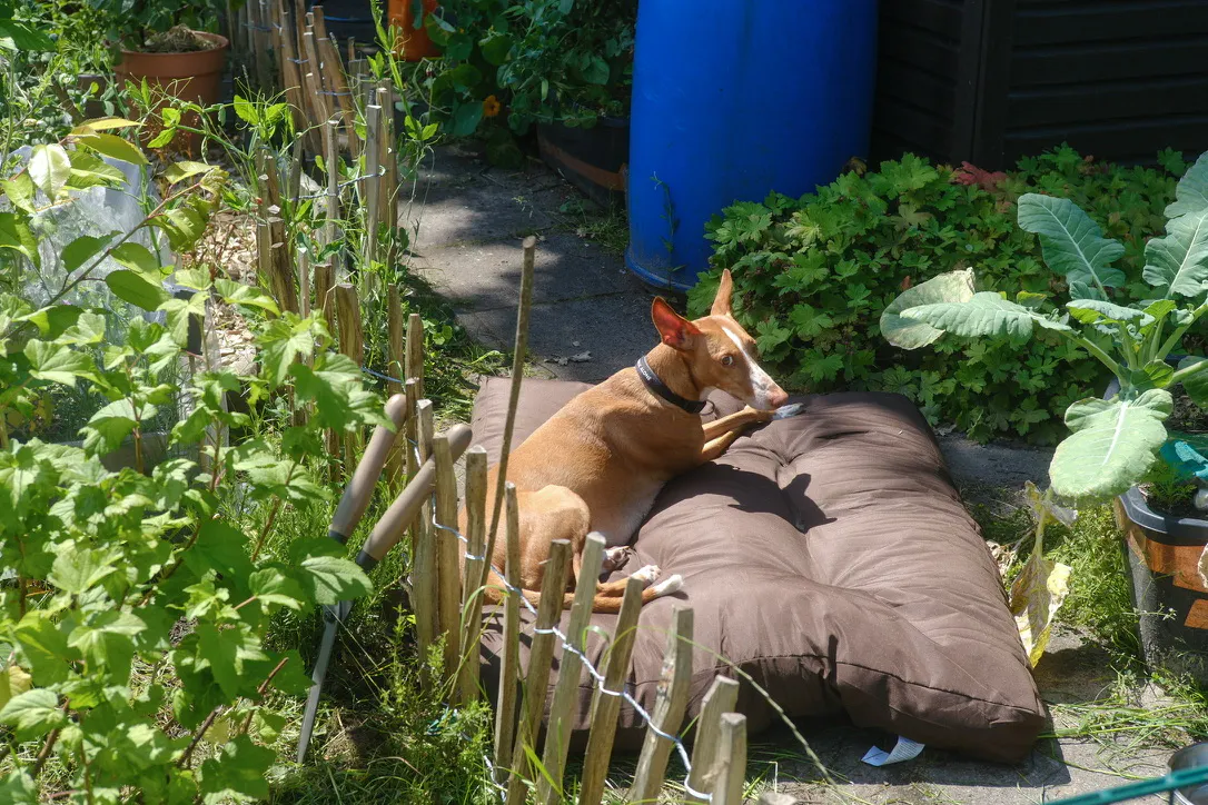 Und so in Dänegart am Staudenbeet (wir setzen den Zaun jetzt aber bald neu, weil jetzt nebenan das Heidelbeerbeet ist, das von den Hunden auch nicht unbedingt gepflügt werden muss):