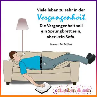 Wir sollten versuchen, uns aus der Vergangenheit zu lösen. Sie ist ein für alle Male vorbei. Man sollte nicht in der Vergangenheit gefangen sein oder bleiben, sondern nach vorne schauen. Die Vergangenheit haben wir schon erlebt – die Zukunft nicht! Wir sollten die Erkenntnisse aus der Vergangenheit nutzen, vom Sofa aufstehen und dann weitergehen, um in Zukunft erfolgreicher zu sein.