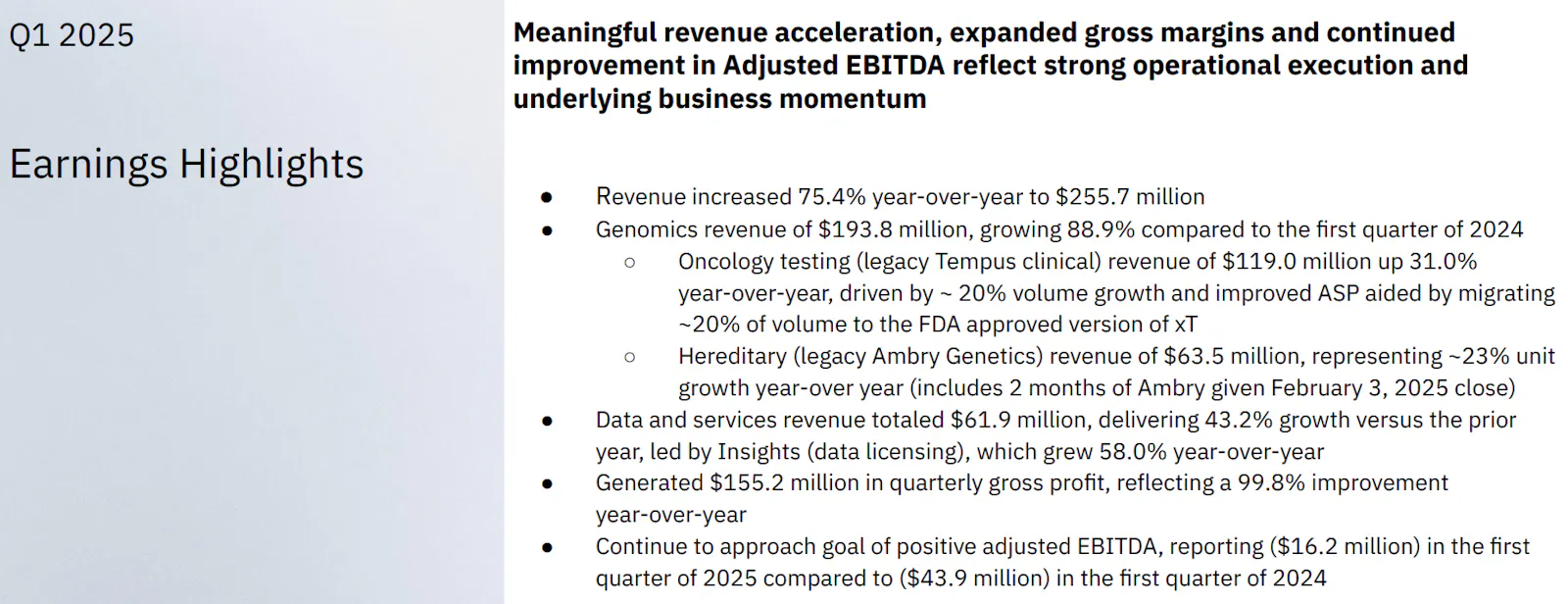 Im ersten Quartal 2025 konnte Tempus AI bedeutende operative Fortschritte in den Bereichen Genomik, Daten und Applications erzielen.