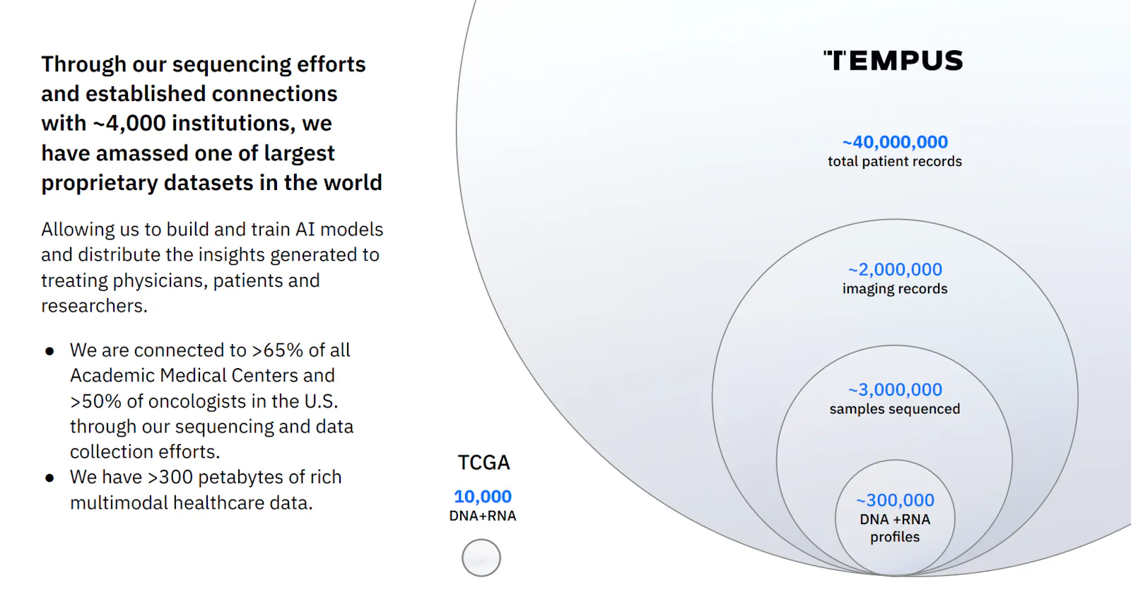 65 % aller akademischen medizinischen Zentren und über 50 % der Onkologen in den USA sind über die Sequenzierungs- und Datenerfassungsaktivitäten mit den Algorithmen von Tempus AI verbunden. Dadurch entsteht ein starker Netzwerkeffekt.