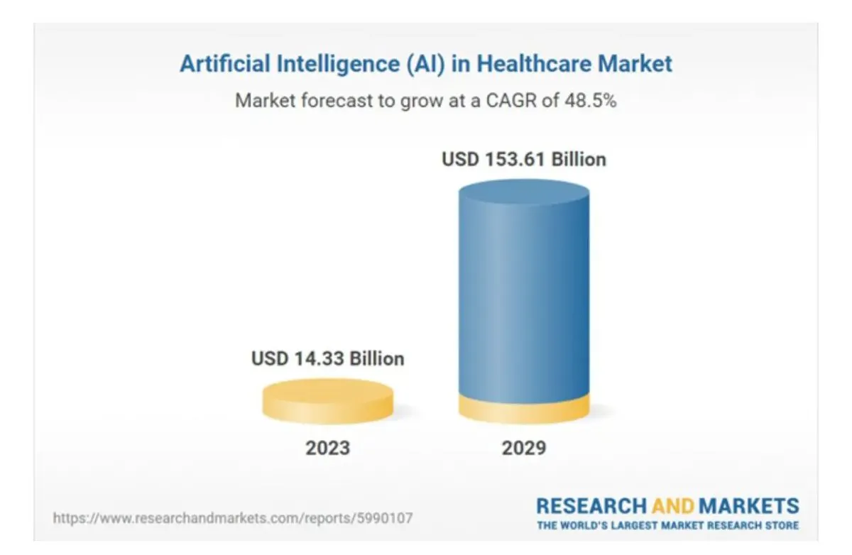 Der Markt für KI im Gesundheitswesen wird bis 2029 voraussichtlich 153,61 Milliarden US-Dollar erreichen, was einer durchschnittlichen jährlichen Wachstumsrate von 48,49 % entspricht. Tempus AI wird meiner Meinung ein dominanter Player im Bereich KI im Gesundheitswesen sein.