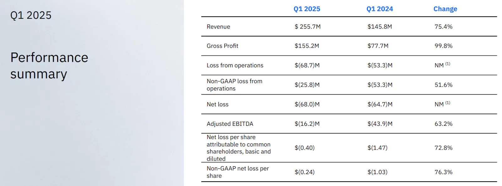 Insgesamt zeigt die Performance im Q1 2025 ein deutliches Umsatzwachstum, das Unternehmen macht allerdings weiterhin Verluste.