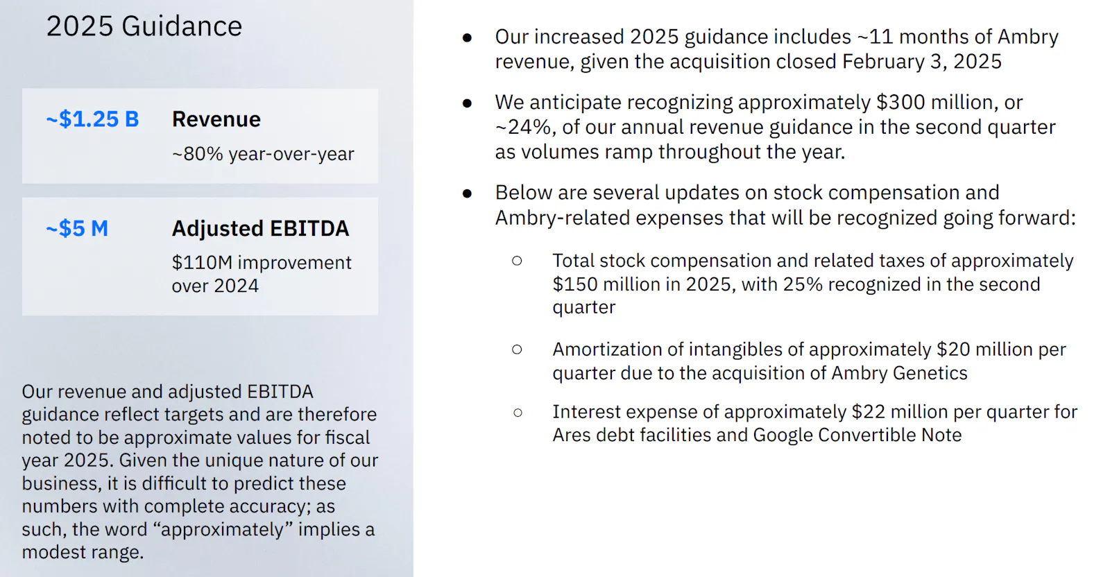 Diese Prognose berücksichtigt rund elf Monate Umsatzbeitrag von Ambry Genetics, nachdem die Übernahme am 3. Februar 2025 abgeschlossen wurde. Tempus AI plant, allein im zweiten Quartal etwa 300 Millionen US-Dollar Umsatz zu realisieren, was rund 24 % der Jahresprognose entspricht, aufgrund eines zunehmenden Volumens im Jahresverlauf.