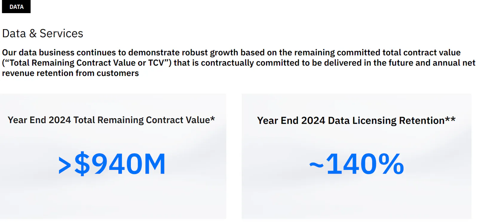 Der Bereich Data Services (Datendienste) von Tempus AI verzeichnet ein starkes Wachstum. Dieses basiert vor allem auf dem verbleibenden vertraglich zugesicherten Umsatzvolumen („Total Remaining Contract Value“ oder TCV) sowie auf einer hohen Kundenbindung im Bereich Datenlizenzierung.