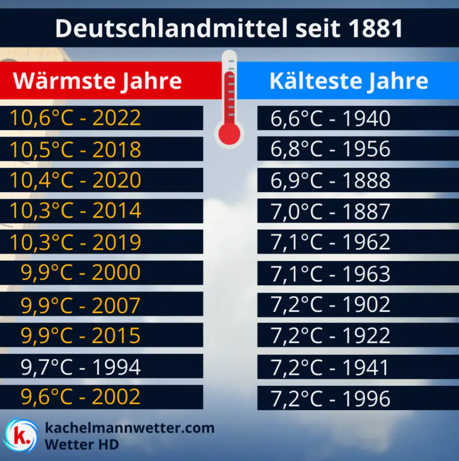 Zur Veranschaulichung haben wir in einer Collage einige Temperaturstatistiken zum Vergleich gegenübergestellt: