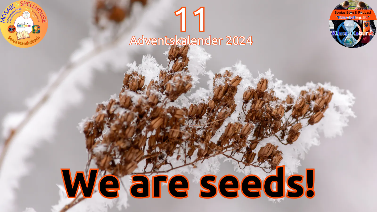 GUTSCHEIN Nachwachsen nach Zerstörung - Kostenlose Online-Seminarangebote - Blogbeitrag: "We are seeds" & Adventskalender: 11. Dezember 2024 ... | Sonja Manderbach (Opens in a new window)